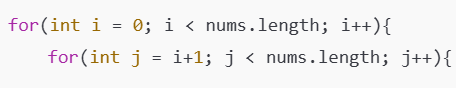The outer loop iterates through each element in nums using index i.The inner loop starts from i+1 to avoid using the same element twice.